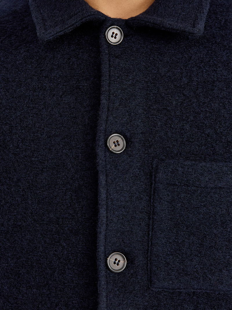 This navy wool jacket blends classic style with functional durability. Crafted from warm, quality wool, it provides reliable insulation for cooler days. Its tailored design ensures a sharp, uniform appearance, making it suitable for both professional settings and smart casual wear. Practical and timeless, this jacket is an essential outer layer for enhanced comfort and style throughout the season.