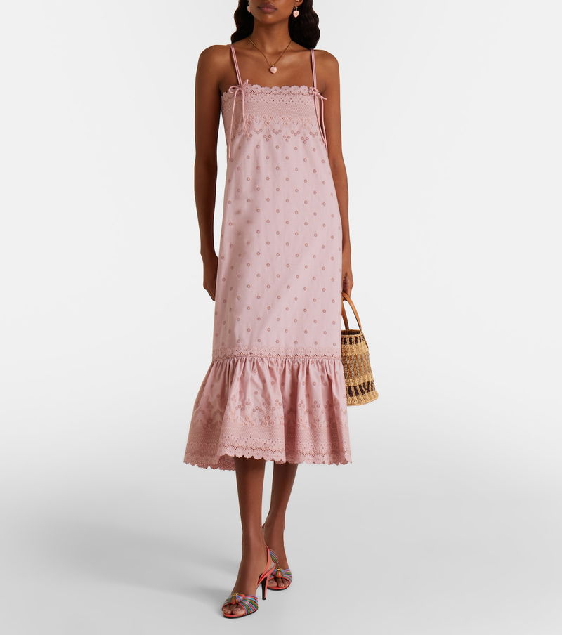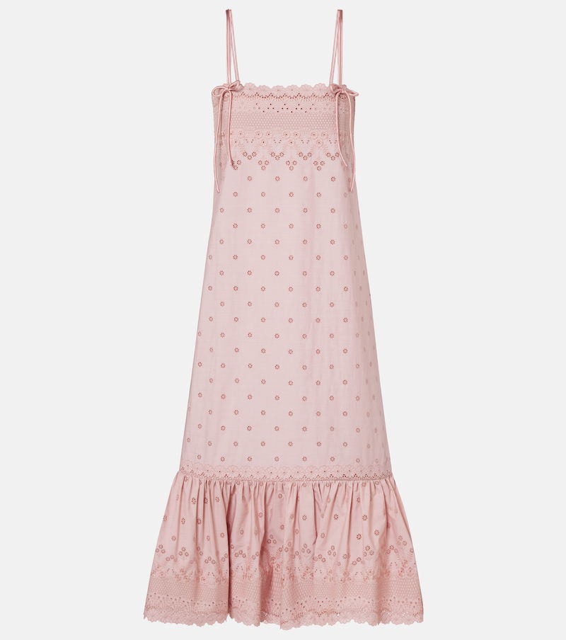 Broderie Anglaise Silk-trimmed Cotton Midi Dress