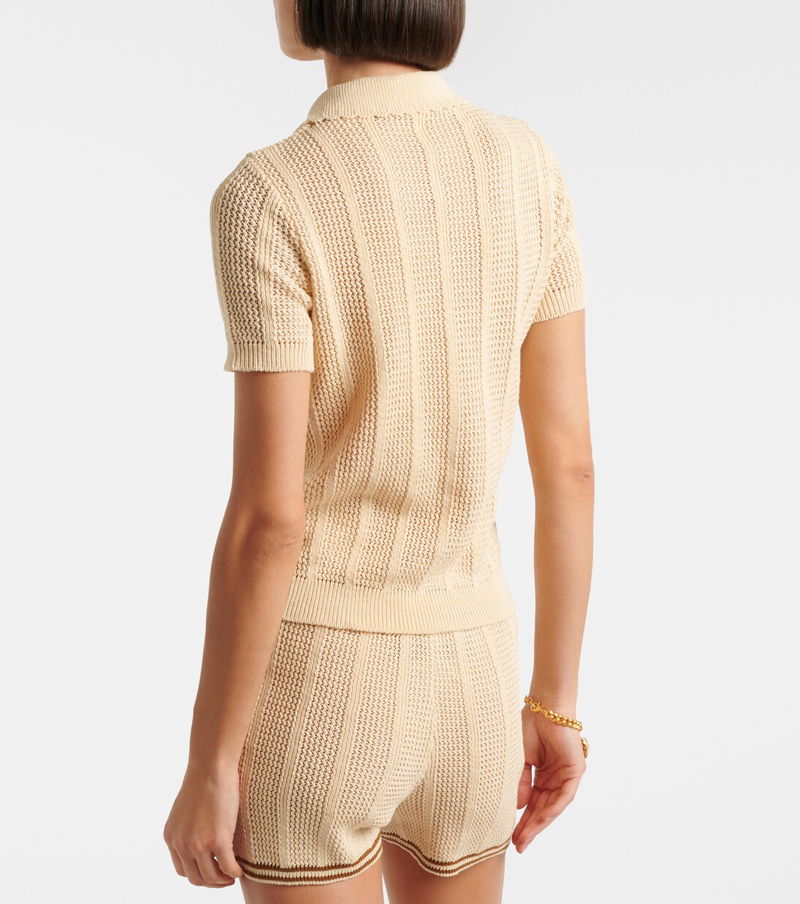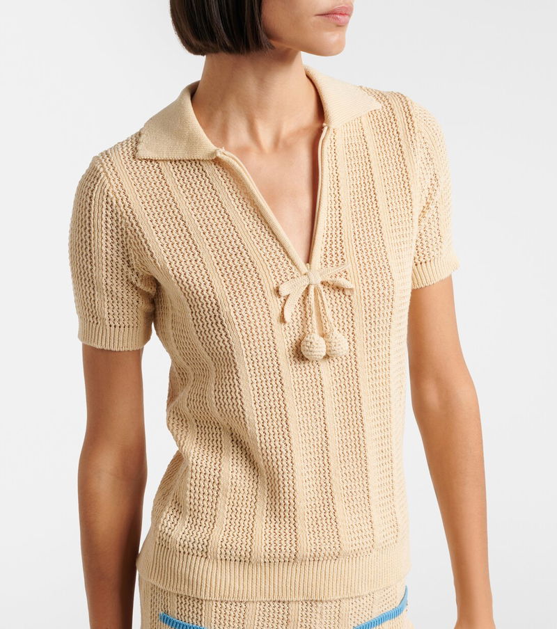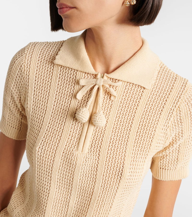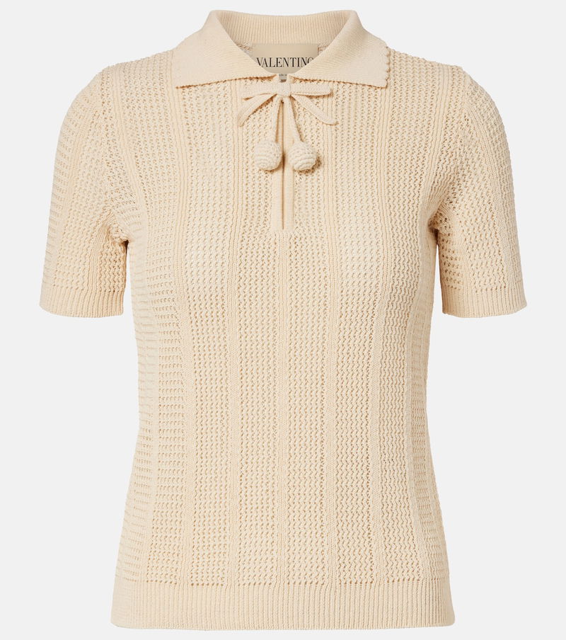 Valentino has become a symbol of crafting excellence, creativity, and uniqueness. This polo shirt is knitted from cotton, complemented by a scalloped collar and trimmed with tonal embroidered cherry accents.