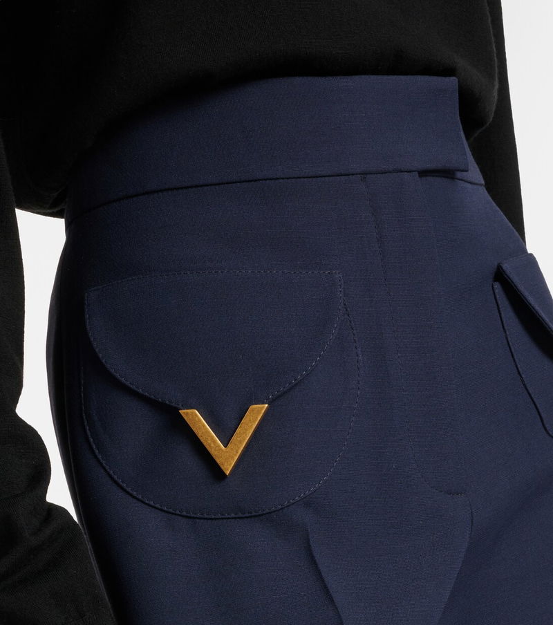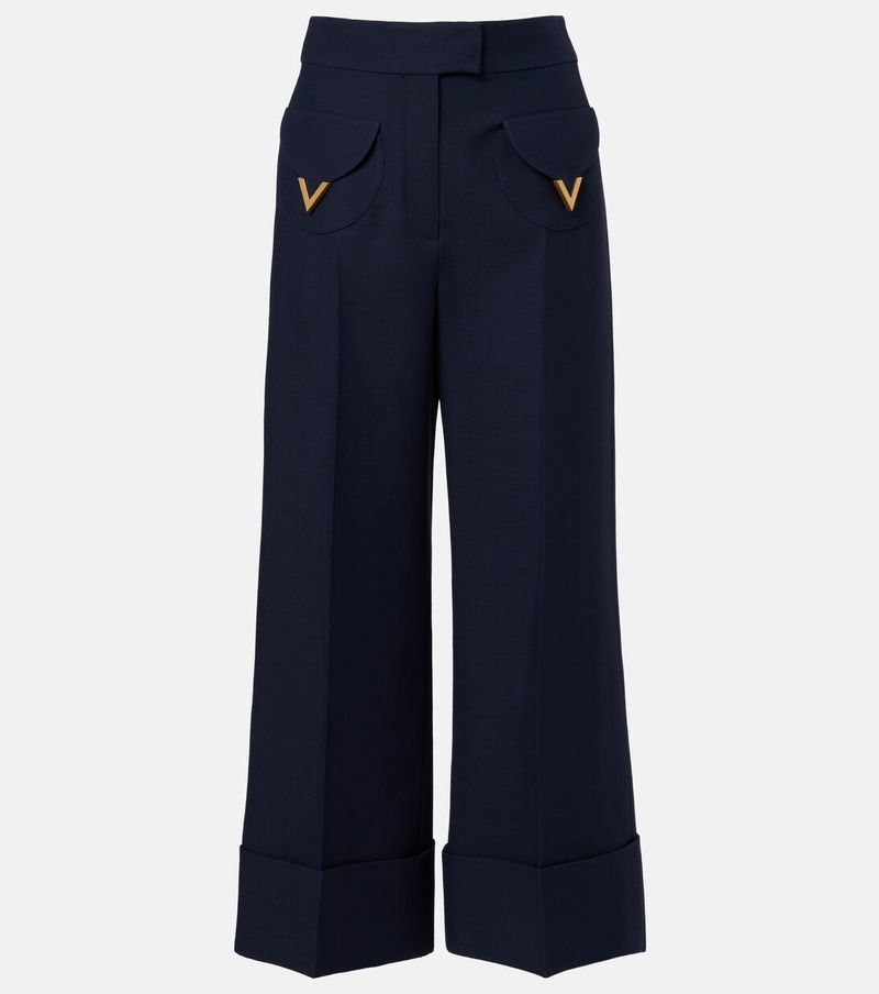 Valentino's signature Crepe Couture fabric – a luxurious wool and silk blend – provides structure and a beautiful drape. These pants are made from the distinctive material and tailored to a wide-leg silhouette with refined creases and VGold accents.