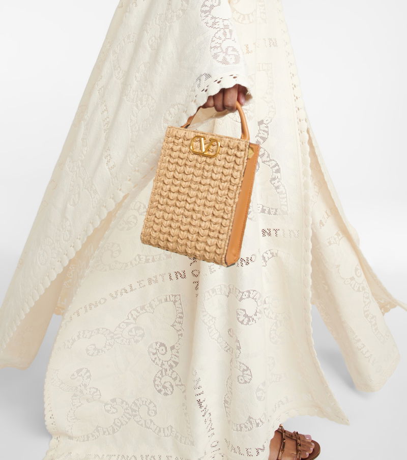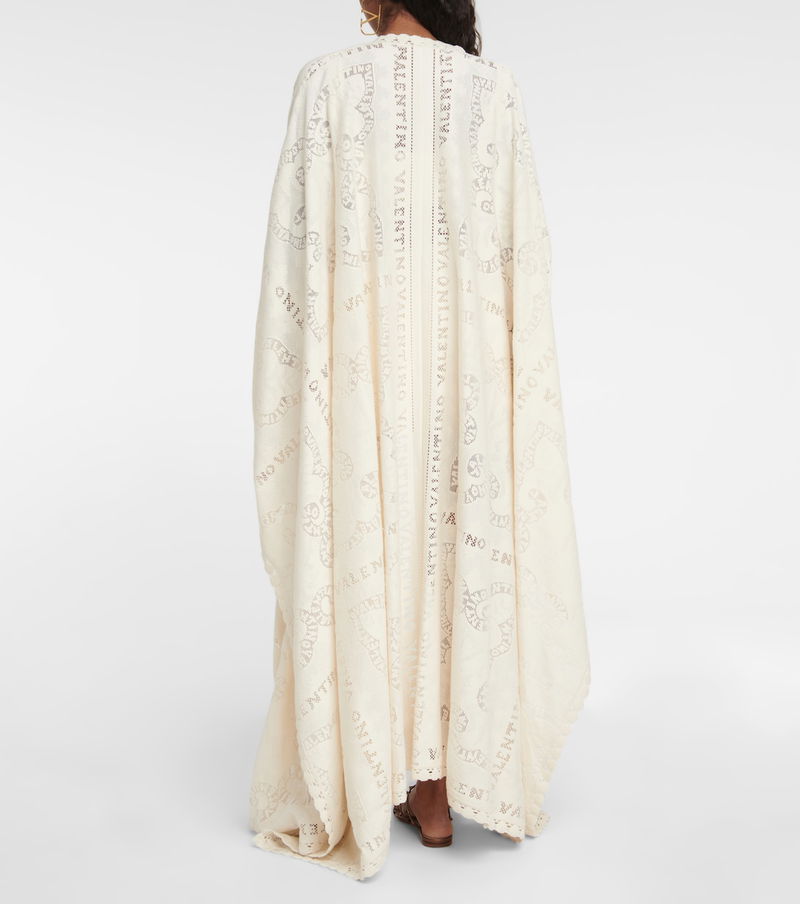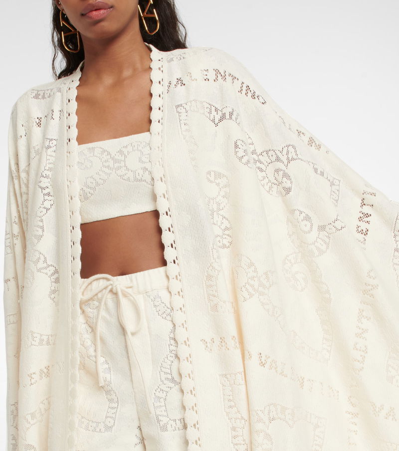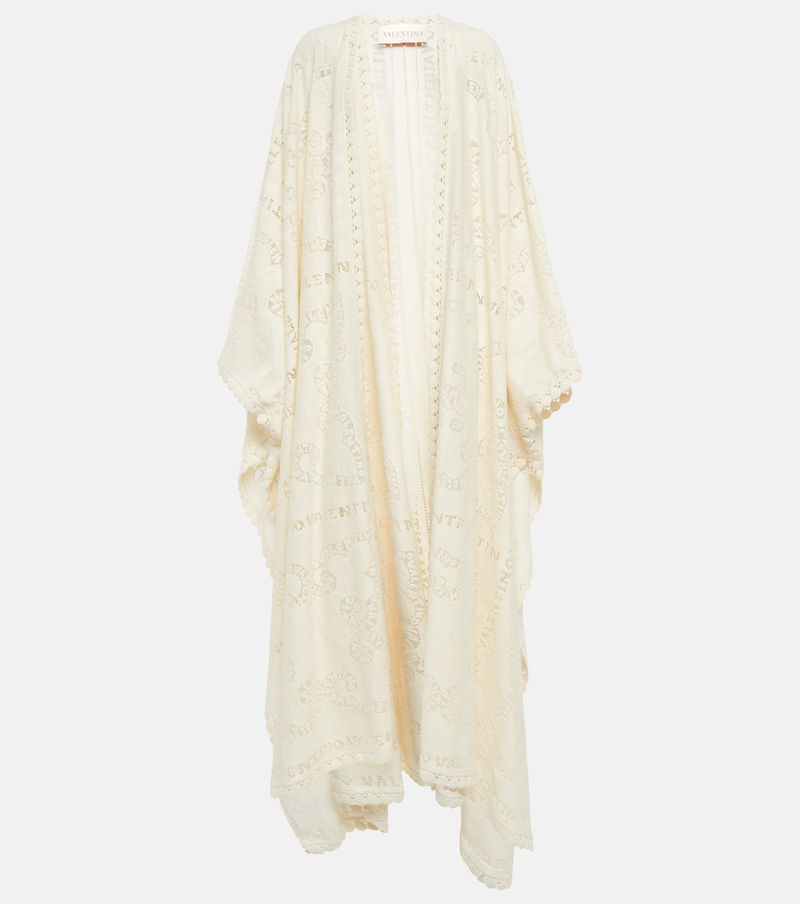 Intricate and tactile, this cotton-blend long beach cover-up from Valentino is detailed with swirling logo cutwork throughout. Draping with cinematic mastery, this piece has an open front that’s trimmed with embroidered detailing and wide kimono-inspired sleeves.