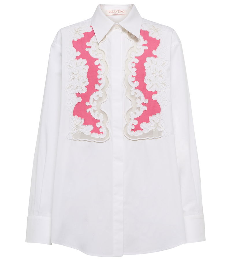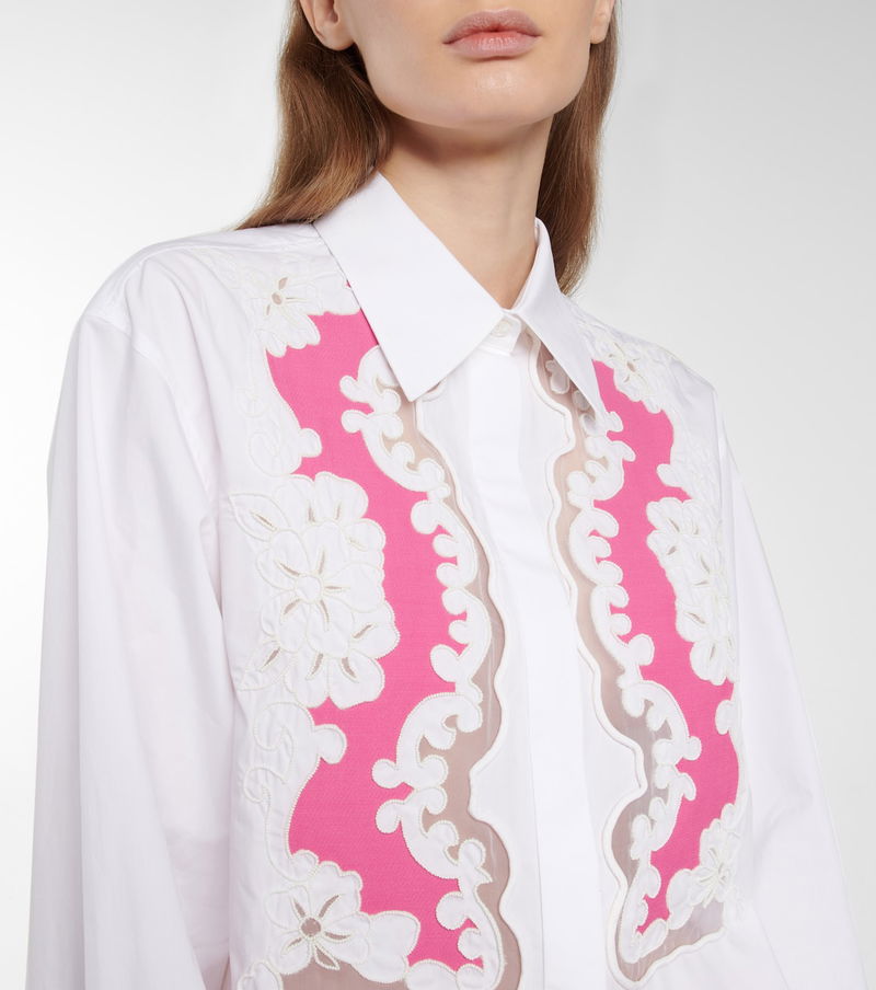 Valentino presents a fresh take on shirting with this relaxed design. Made from crisp cotton, it’s paneled with pink inserts that are edged with floral embroidery and cutout detailing.