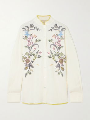 This floral shirt from Valentino is crafted from silk in a loose-fitting, button-down silhouette. The blooming design is adorned allover with a daisy print.