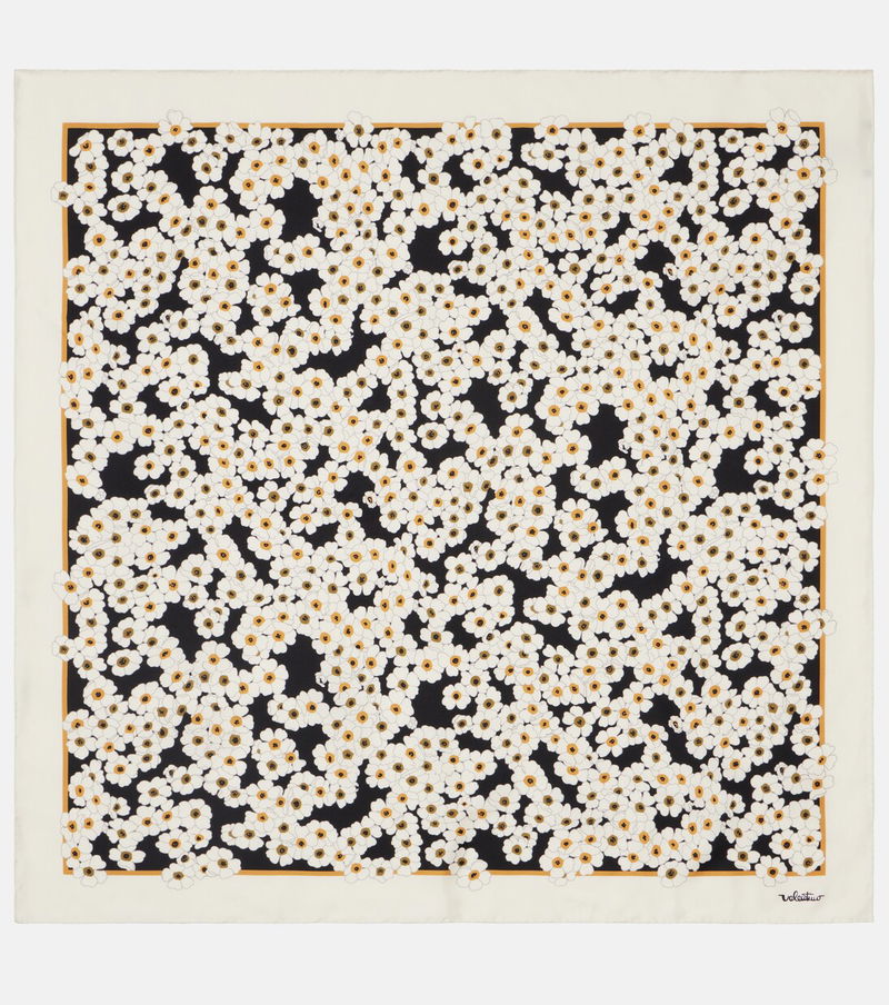 Valentino has become a symbol of crafting excellence, creativity, and uniqueness. Made in Italy, this square scarf features scattered florals atop the silk construction.