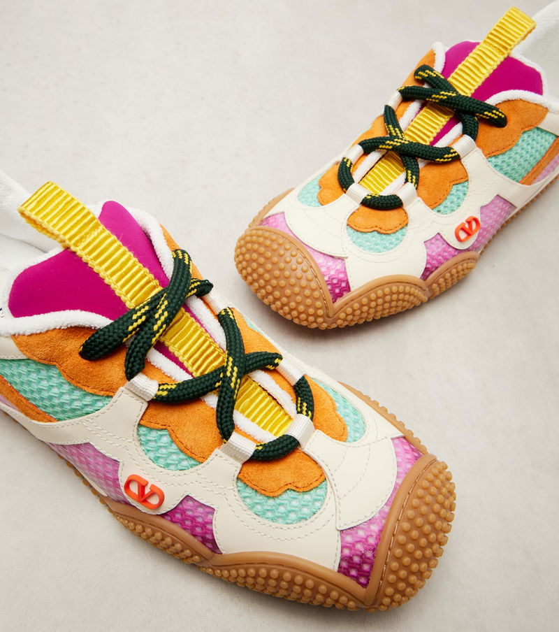 Garavani is better known by his mononym, Valentino. From the signature Rockstud leather shoes to richly embellished dresses, knitwear, tailoring and separates, Valentino Garavani pieces are characterised by a bold and playful use of colour and pattern, with a through line of glamour and luxury.