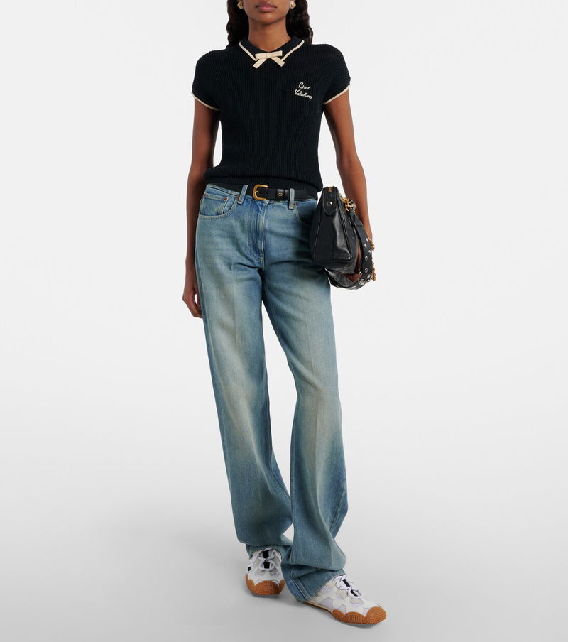 Garavani is better known by his mononym, Valentino. From the signature Rockstud leather shoes to richly embellished dresses, knitwear, tailoring and separates, Valentino Garavani pieces are characterised by a bold and playful use of colour and pattern, with a through line of glamour and luxury.