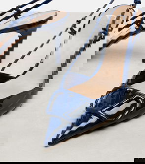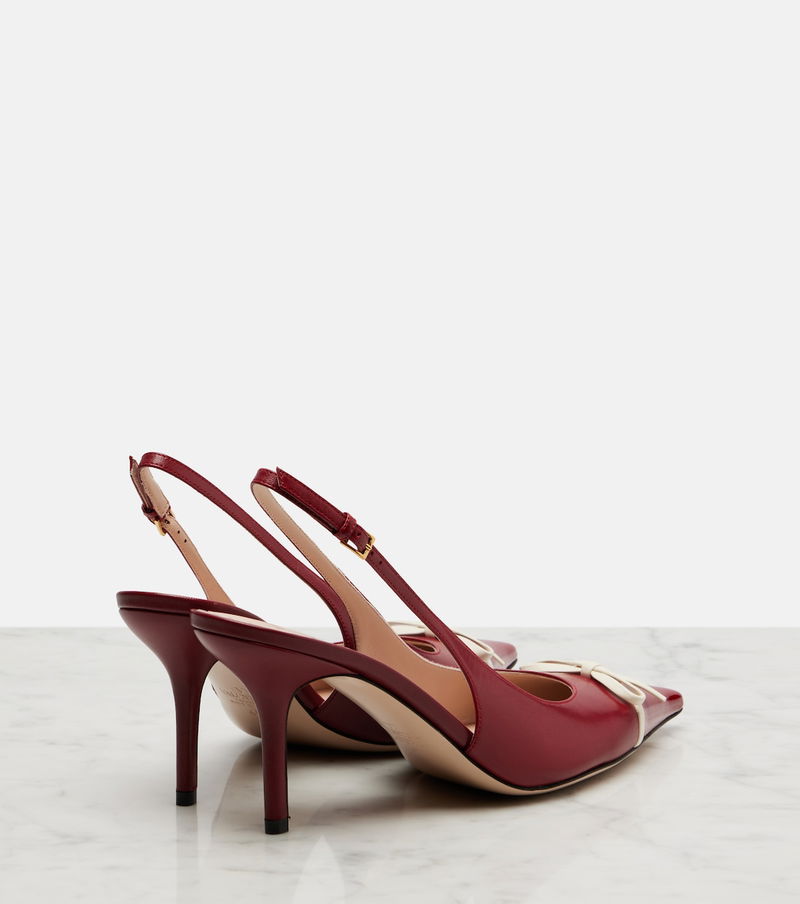 Valentino Garavani's aesthetic is grounded in timeless elegance with a modern edge. The Bepointy slingback pumps are crafted from patent leather for a glossy finish, featuring delicate bow details, 80mm heels, and VLogo hardware across the vamps.