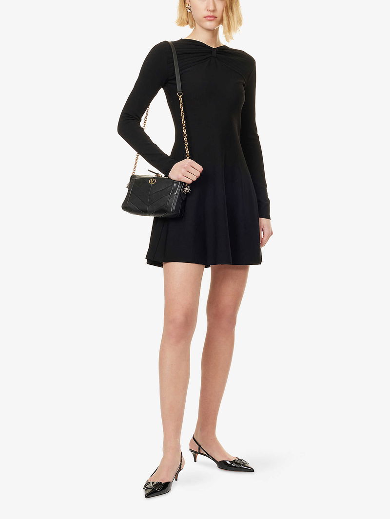 Garavani is better known by his mononym, Valentino. From the signature Rockstud leather shoes to richly embellished dresses, knitwear, tailoring and separates, Valentino Garavani pieces are characterised by a bold and playful use of colour and pattern, with a through line of glamour and luxury.