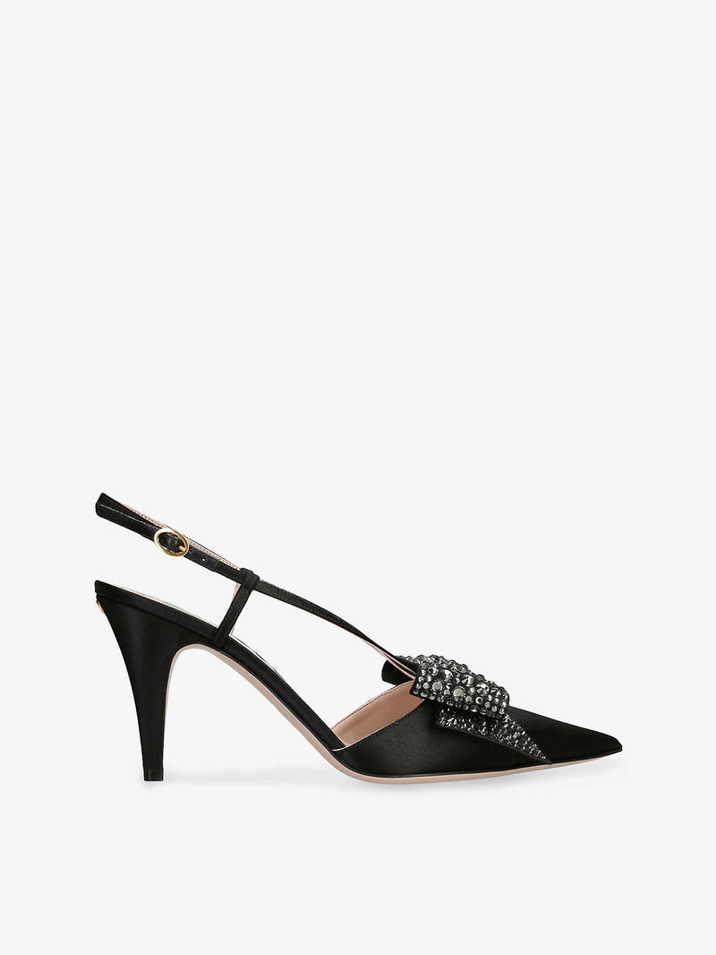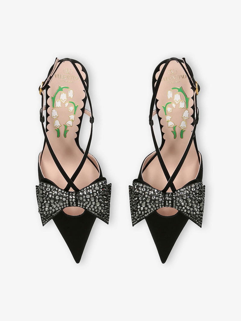 Garavani is better known by his mononym, Valentino. From the signature Rockstud leather shoes to richly embellished dresses, knitwear, tailoring and separates, Valentino Garavani pieces are characterised by a bold and playful use of colour and pattern, with a through line of glamour and luxury.