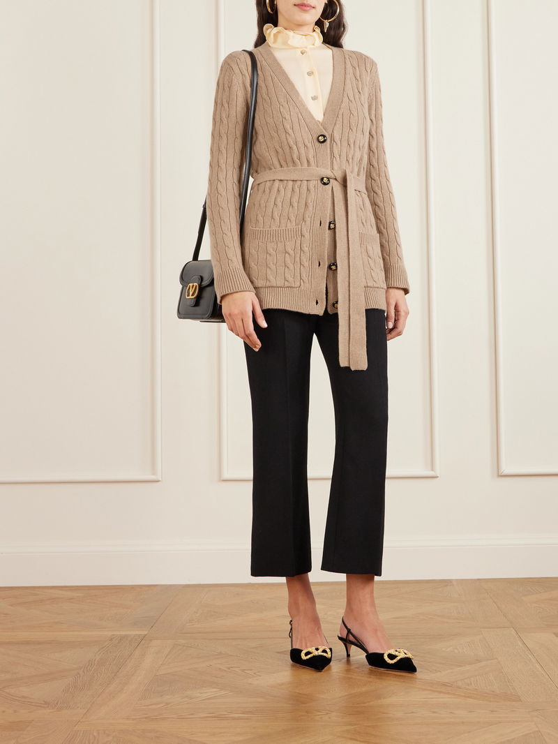 Valentino Garavani's cardigan is detailed with classic cables for a relaxed finish that offsets the slim fit. It's knitted from pure cashmere and belts as the waist should you want extra definition.