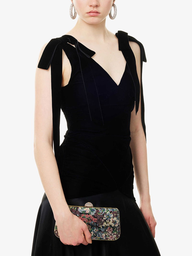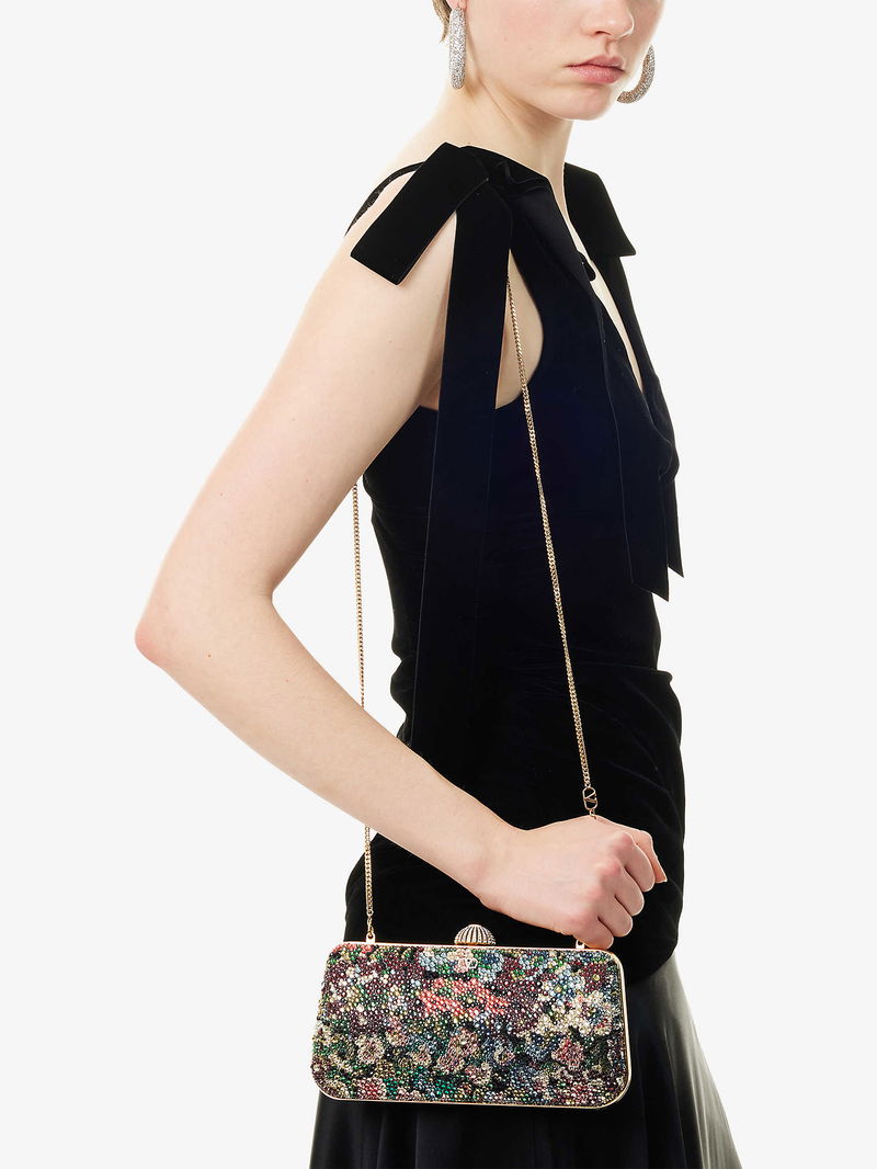 Garavani is better known by his mononym, Valentino. From the signature Rockstud leather shoes to richly embellished dresses, knitwear, tailoring and separates, Valentino Garavani pieces are characterised by a bold and playful use of colour and pattern, with a through line of glamour and luxury.