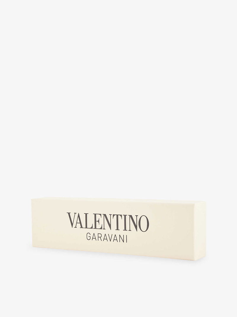 Garavani is better known by his mononym, Valentino. From the signature Rockstud leather shoes to richly embellished dresses, knitwear, tailoring and separates, Valentino Garavani pieces are characterised by a bold and playful use of colour and pattern, with a through line of glamour and luxury.