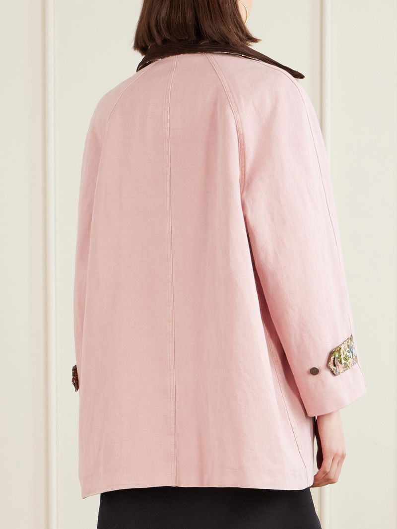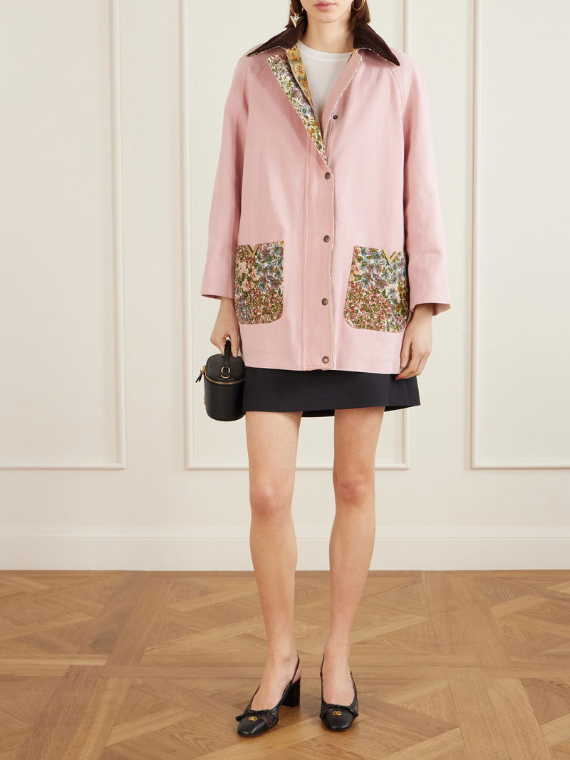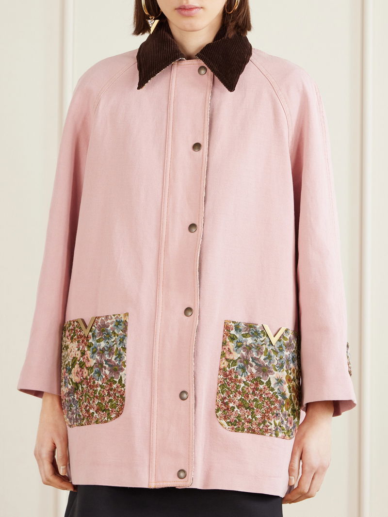 Valentino Garavani's jacket radiates a vintage feel that's charmingly pretty. Made in Italy from rosy-pink cotton and linen-blend, it has a corduroy collar and contrasting pockets complete with 'V' hardware. Style yours with Mary Janes.