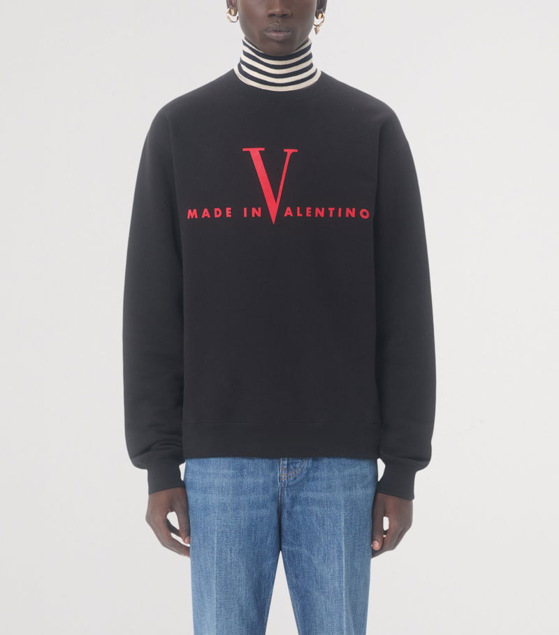 Crafted from pure cotton, this sweatshirt showcases the season's Made in Valentino print, a vintage-inspired nod to its reputation for exquisite craftsmanship and style.