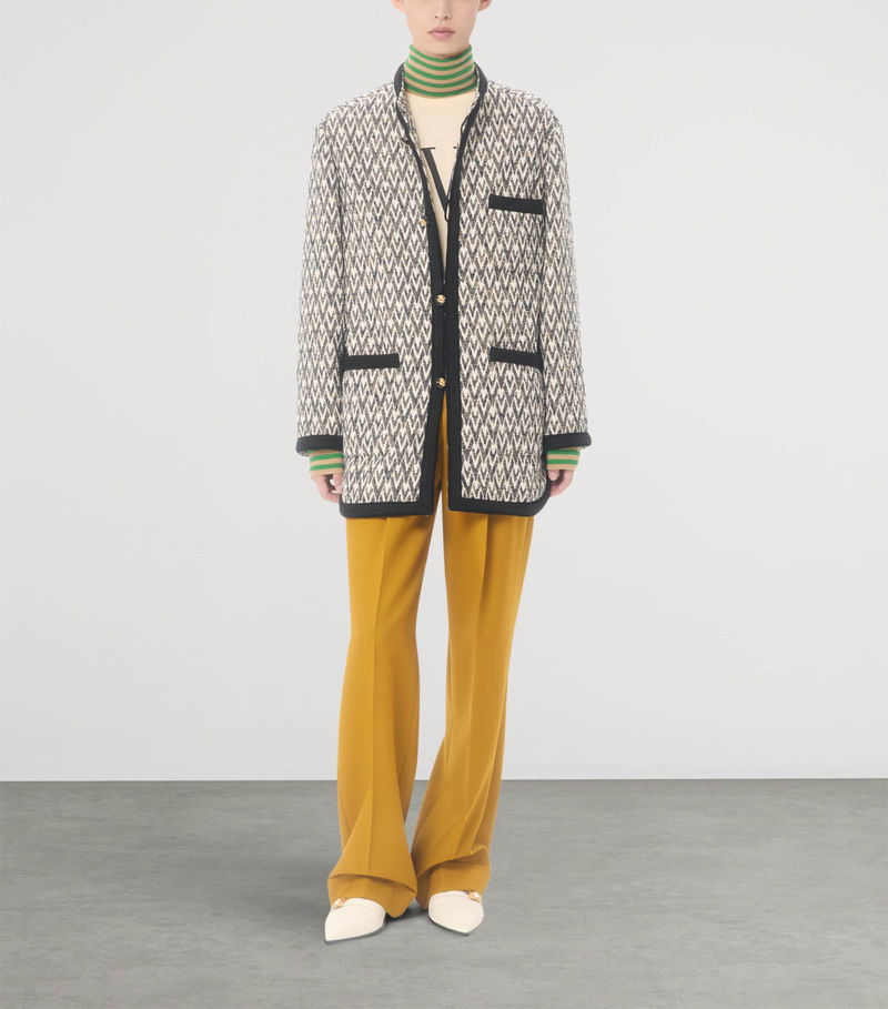 Garavani is better known by his mononym, Valentino. From the signature Rockstud leather shoes to richly embellished dresses, knitwear, tailoring and separates, Valentino Garavani pieces are characterised by a bold and playful use of colour and pattern, with a through line of glamour and luxury.
