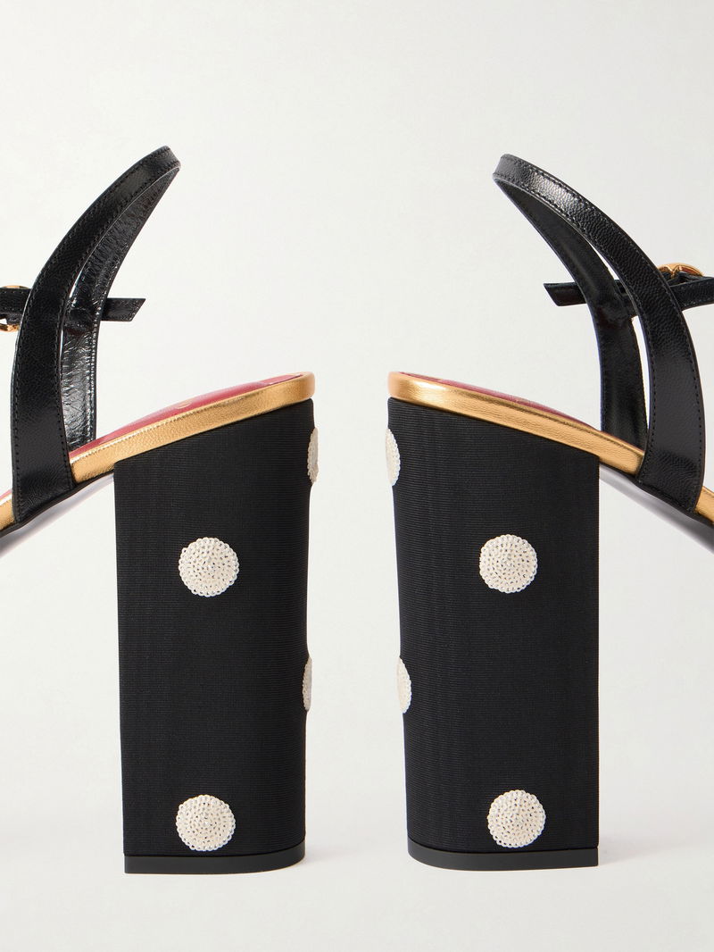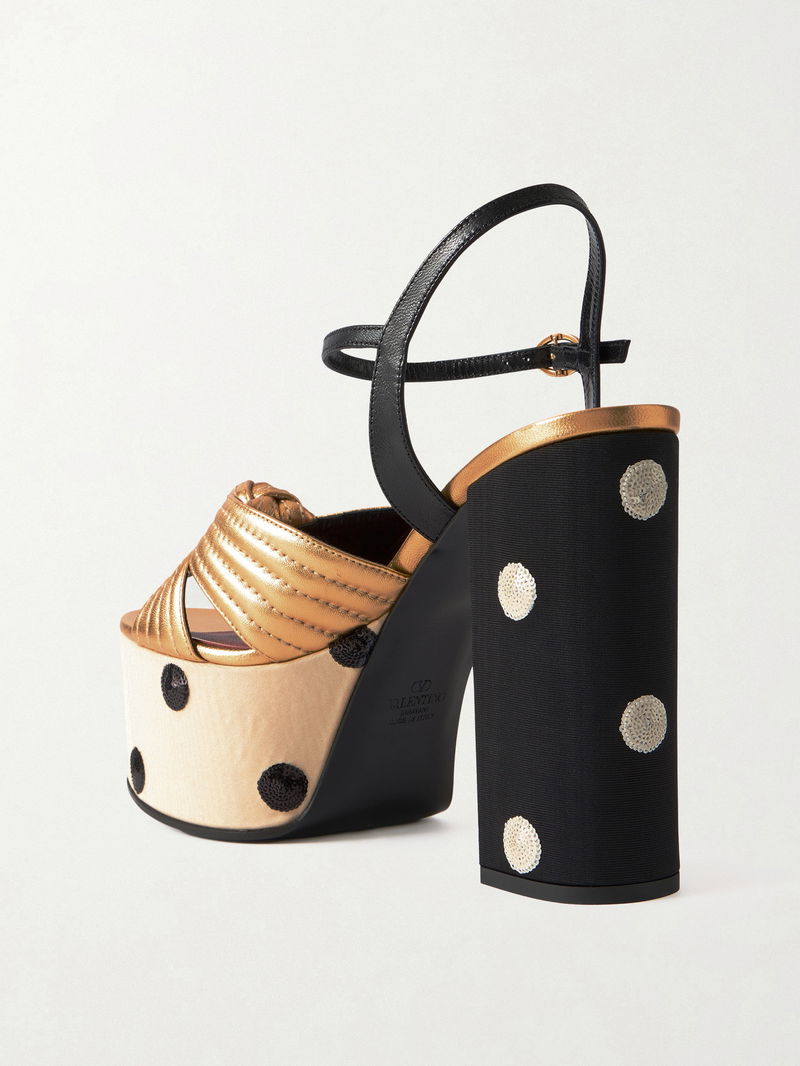 Crasher 125 Knot-detailed Sequined Moiré And Leather Platform Sandals