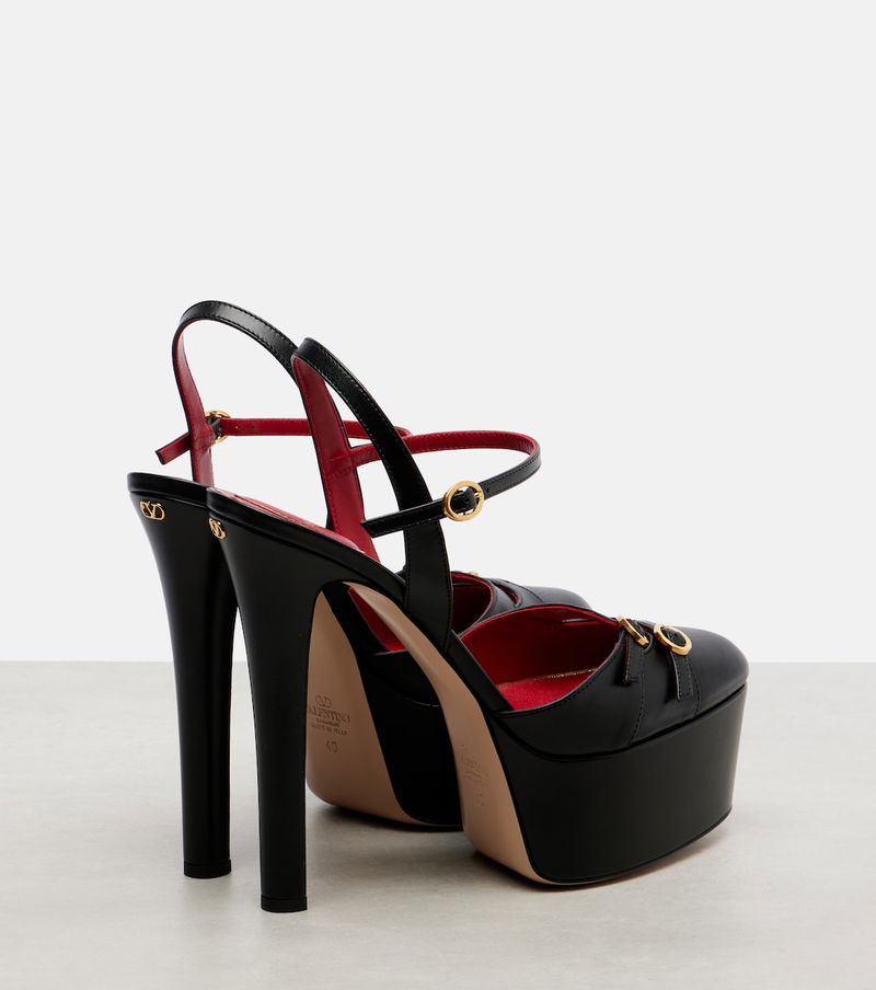 The Crasher pumps from Valentino Garavani showcase a smooth leather construction and buckled straps on the uppers. The design is defined by a pointed-toe silhouette, complete with platform soles and lofty 145mm heels.