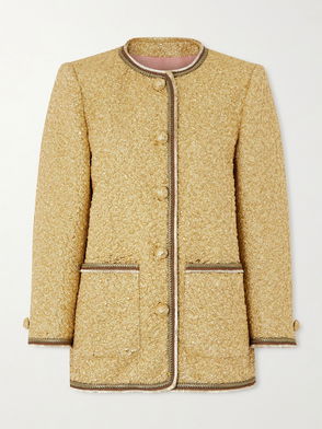 Valentino Garavani's jacket is detailed with shimmering 'V's that create a cool, retro pattern from afar. It's made from metallic wool-blend jacquard with an elegant Nehru collar and fastens with glittering crystal-embellished gold-tone buttons.