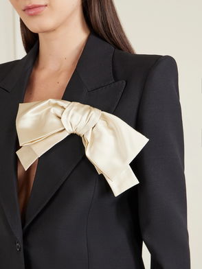 Tailored from grain de poudre wool, it has articulated shoulders, super wide lapels and an elegant hourglass shape that's emphasized by the patch pockets on the hips.