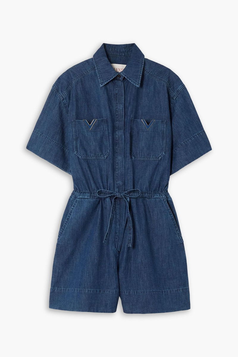 Playsuit, Denim, Logo-embellished, Drawstring waist, Multipockets, Breast pockets, Partially concealed button fastenings through front, Mid-weight, non-stretchy fabric.
