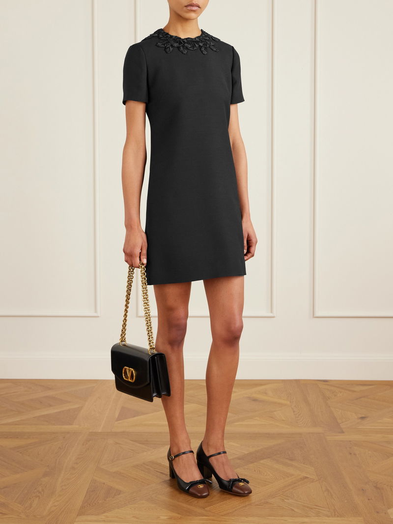 Embellished Silk-trimmed Wool And Silk-blend Crepe Mini Dress