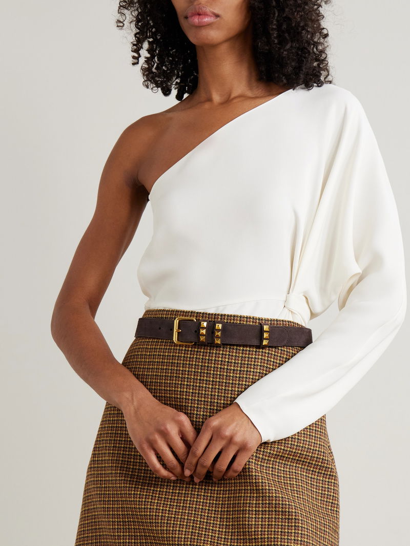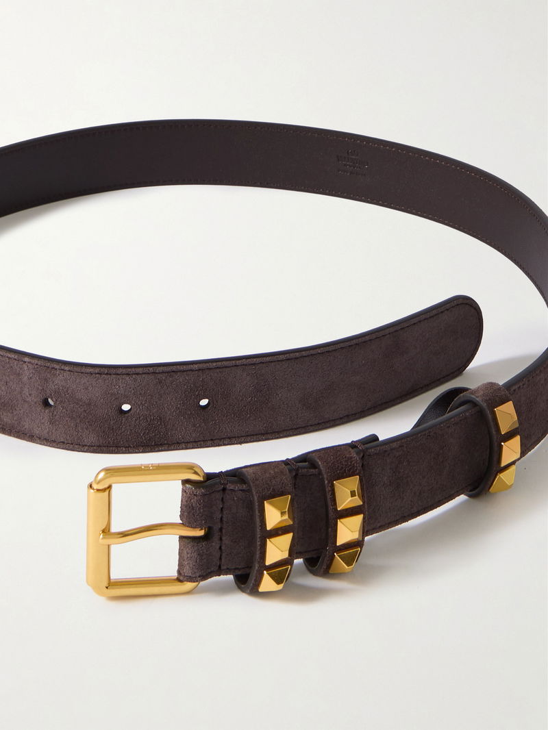 Fans of Valentino Garavani will instantly recognize the signature 'Rockstuds' on this belt. It's been made in Italy from soft suede and fastens with a gold-tone buckle to match the hardware.