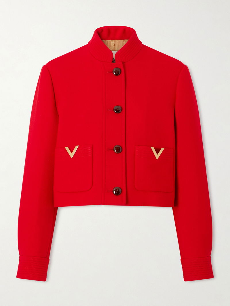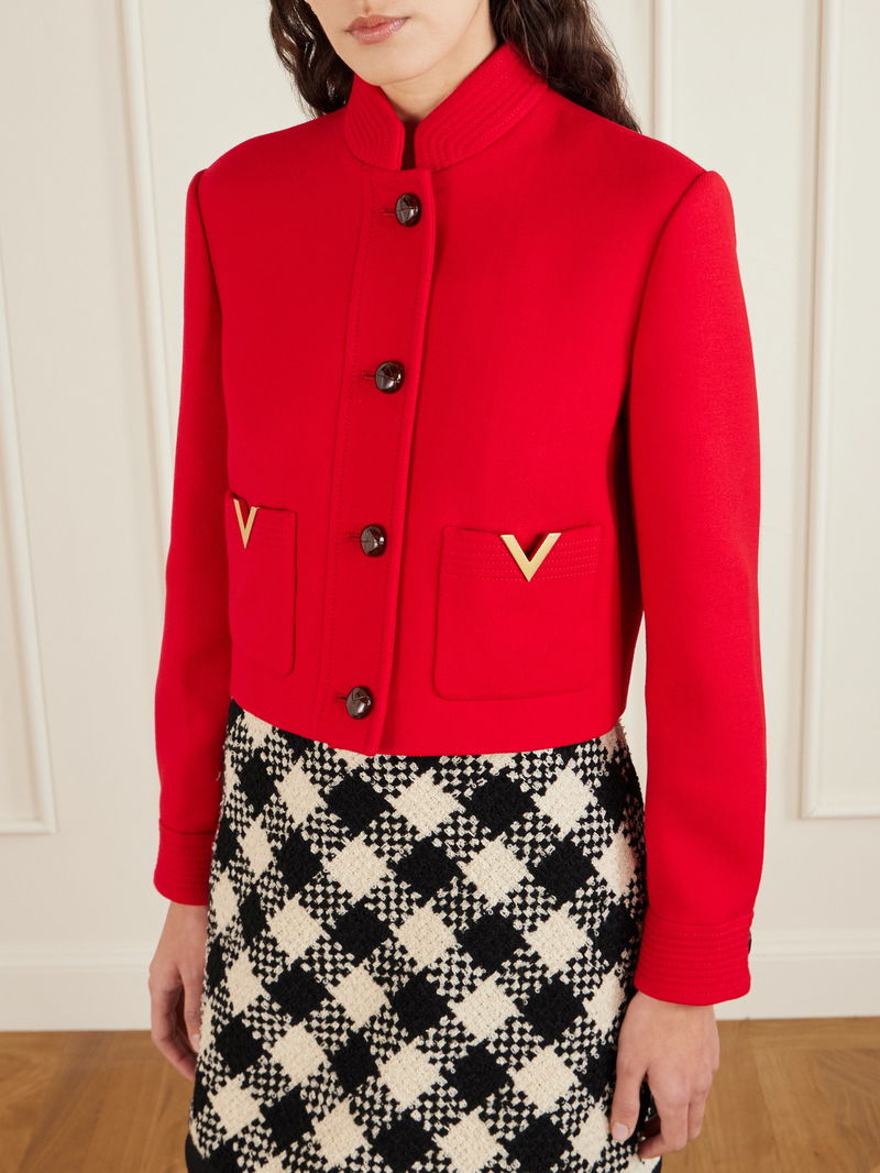 Garavani is better known by his mononym, Valentino. From the signature Rockstud leather shoes to richly embellished dresses, knitwear, tailoring and separates, Valentino Garavani pieces are characterised by a bold and playful use of colour and pattern, with a through line of glamour and luxury.