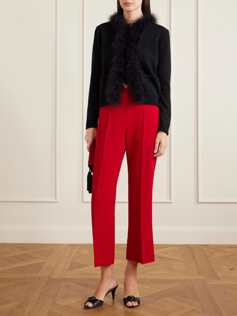 Garavani is better known by his mononym, Valentino. From the signature Rockstud leather shoes to richly embellished dresses, knitwear, tailoring and separates, Valentino Garavani pieces are characterised by a bold and playful use of colour and pattern, with a through line of glamour and luxury.