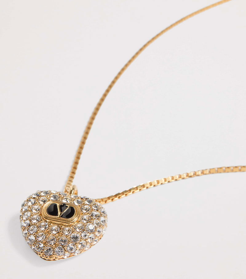 Valentino Garavani captures the language of love with the pendant on this gold-tone necklace, sculpted into a bold heart silhouette and illuminated by Swarovski crystals. At its centre, the House's VLogo shines like a signature of devotion, turning a timeless symbol into a statement of modern romance.