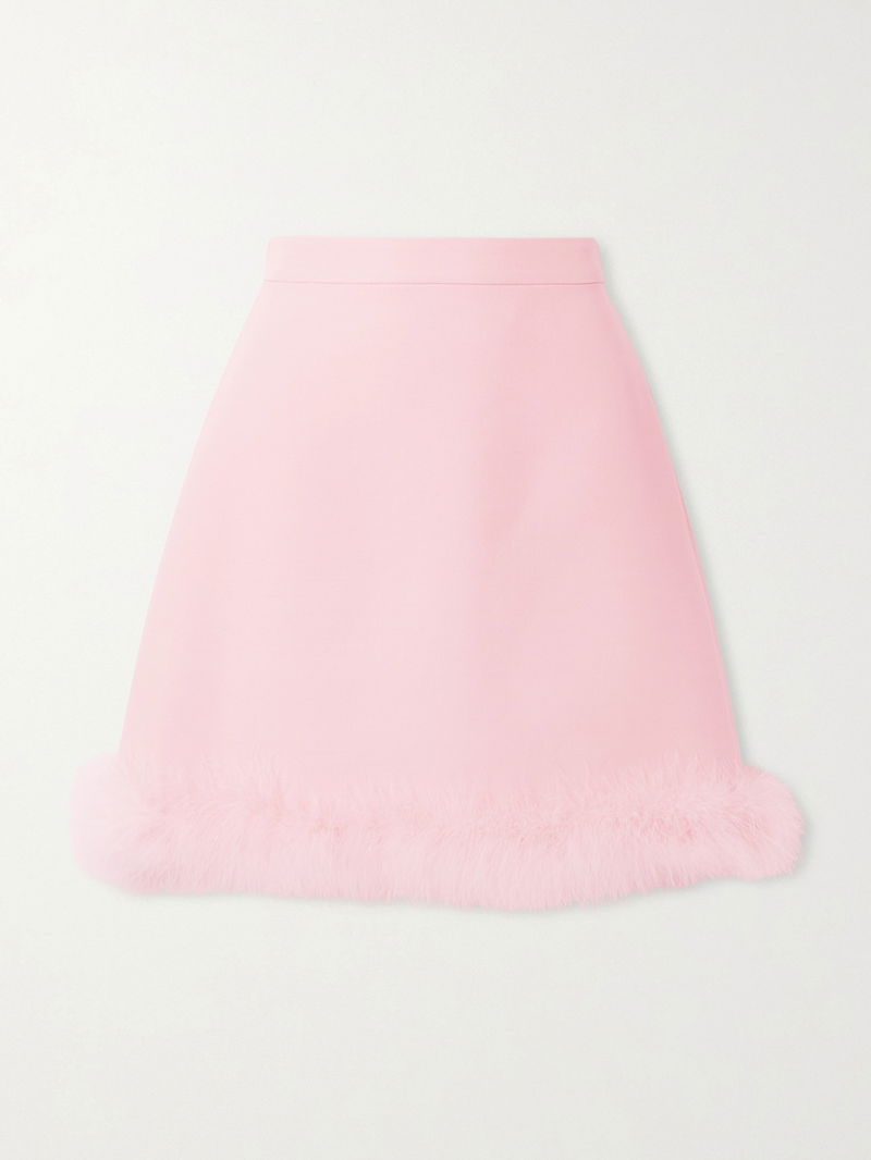 Feather-trimmed Wool And Silk-blend Crepe Mini Skirt
