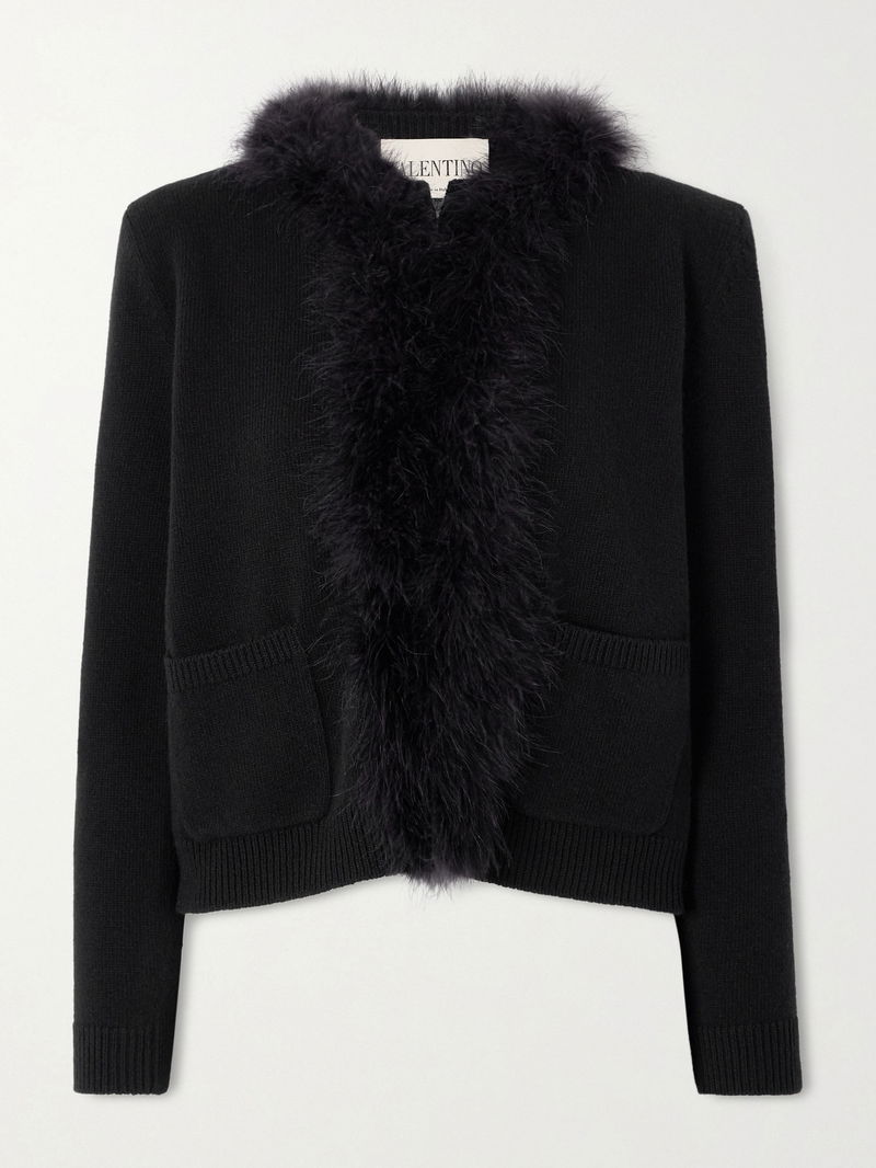 Valentino Garavani's cardigan is trimmed with plush tonal feathers that speak to retro styles, while bringing plenty of playful texture to your looks. It's been made in Italy from wool and is knitted for a slightly boxy shape.