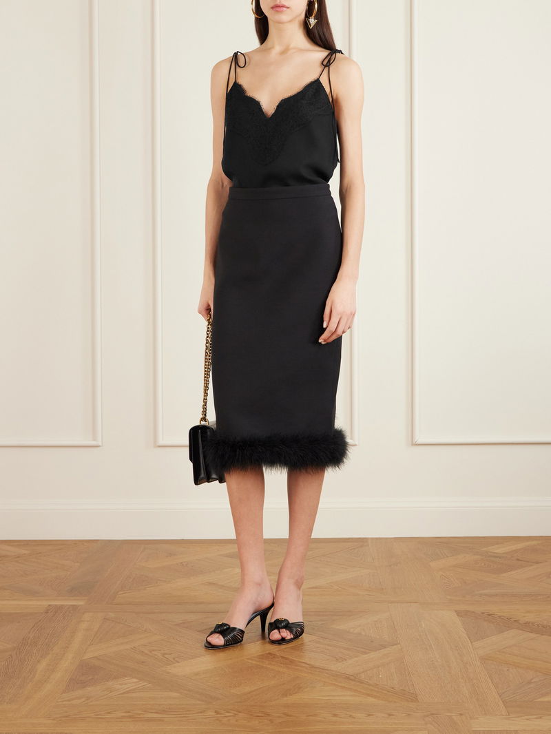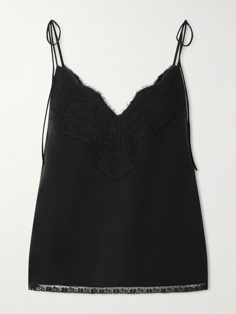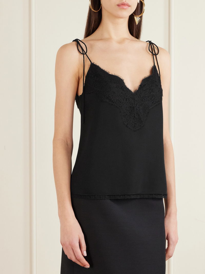 Valentino Garavani's camisole is imbued with romantic details. Made from silk crepe de chine, it's suspended from slim, bow-detailed straps and trimmed with wispy lace along the V-neckline and hem. Gold jewelry will complement the black shade.