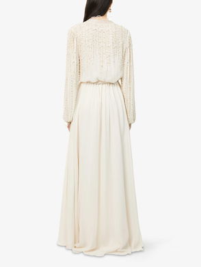 Valentino Garavani woven gown. Concealed zip fastening at back. Regular fit, round neck, sleeveless, pleated design, flared hem.