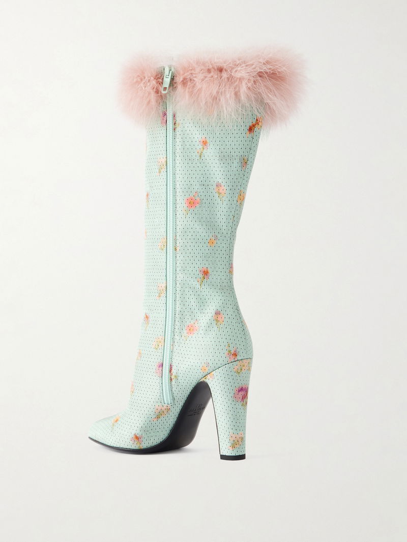 Valentino Garavani's 'Hotty' knee boots are made from crepe and printed with tiny flowers and polka-dots. They're lined in leather to keep the structured shape and have fluffy feather-trimmed cuffs.
