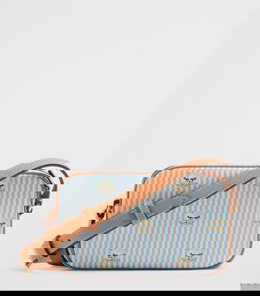 Open top. Rectangular shape, double top handles, all over monogram print, all over knitted, one main compartment, internal brand tab.