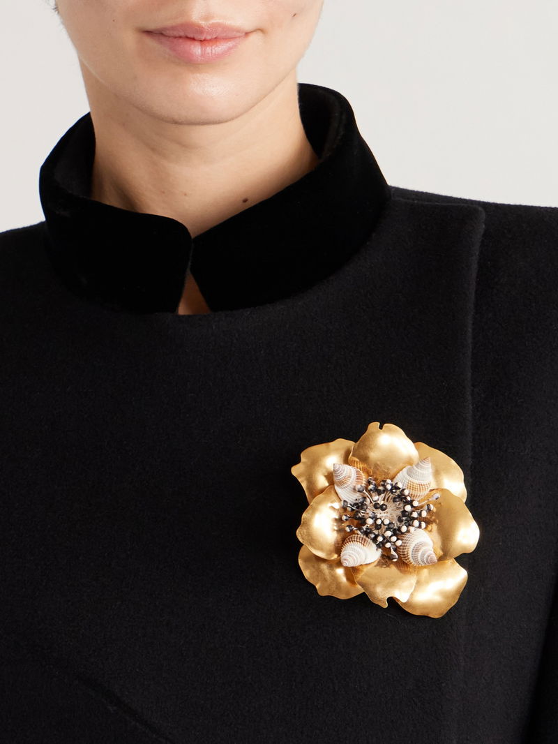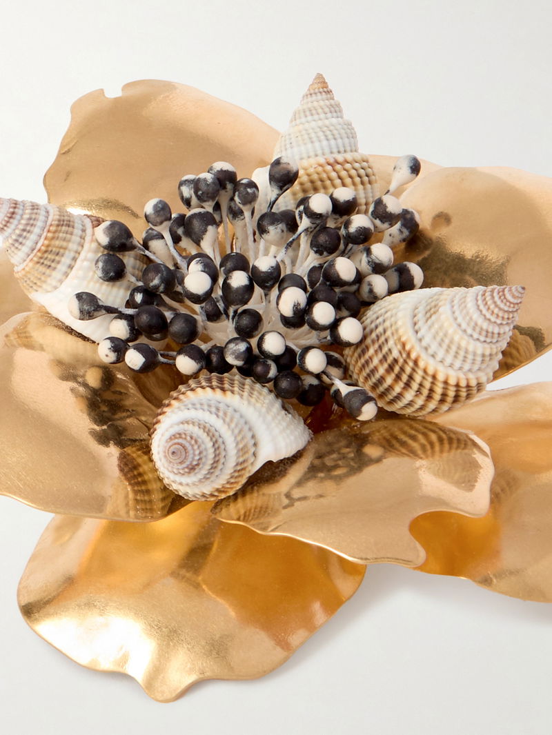 Valentino Garavani's 'Jardin Aquatique' brooch will add textural interest to any look. It's embellished with coral-like details and natural shells and is made from gold-tone metal that's shaped into petals to resemble a flower in bloom.