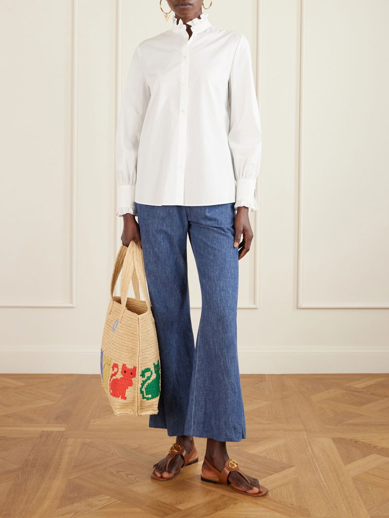 Garavani is better known by his mononym, Valentino. From the signature Rockstud leather shoes to richly embellished dresses, knitwear, tailoring and separates, Valentino Garavani pieces are characterised by a bold and playful use of colour and pattern, with a through line of glamour and luxury.