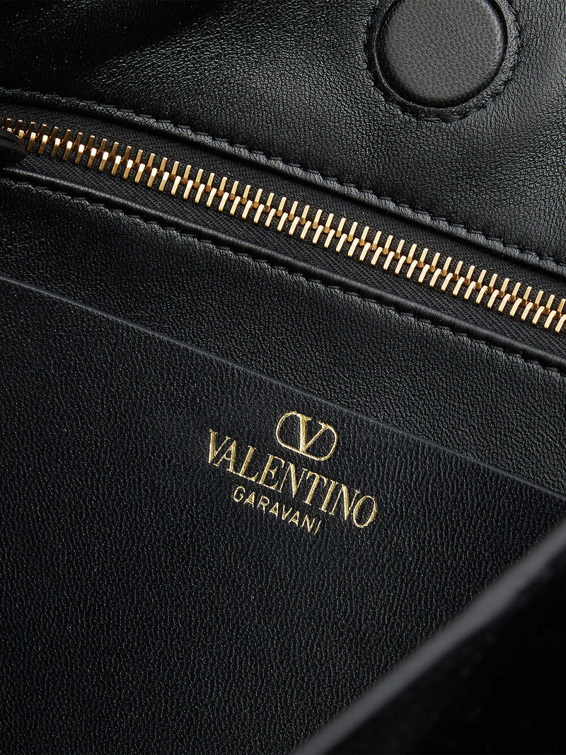Garavani is better known by his mononym, Valentino. From the signature Rockstud leather shoes to richly embellished dresses, knitwear, tailoring and separates, Valentino Garavani pieces are characterised by a bold and playful use of colour and pattern, with a through line of glamour and luxury.