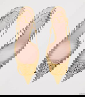 A slingback shoe is an important piece of footwear in any woman's collection. Valentino Garavani has crafted this pair in decadent metallic leather to give a clean look to the heels. The pointed toe is adorned with a Valentino Garavani logo which has been created in the same colour as the rest of the shoe to give a cohesive and elevated feel.