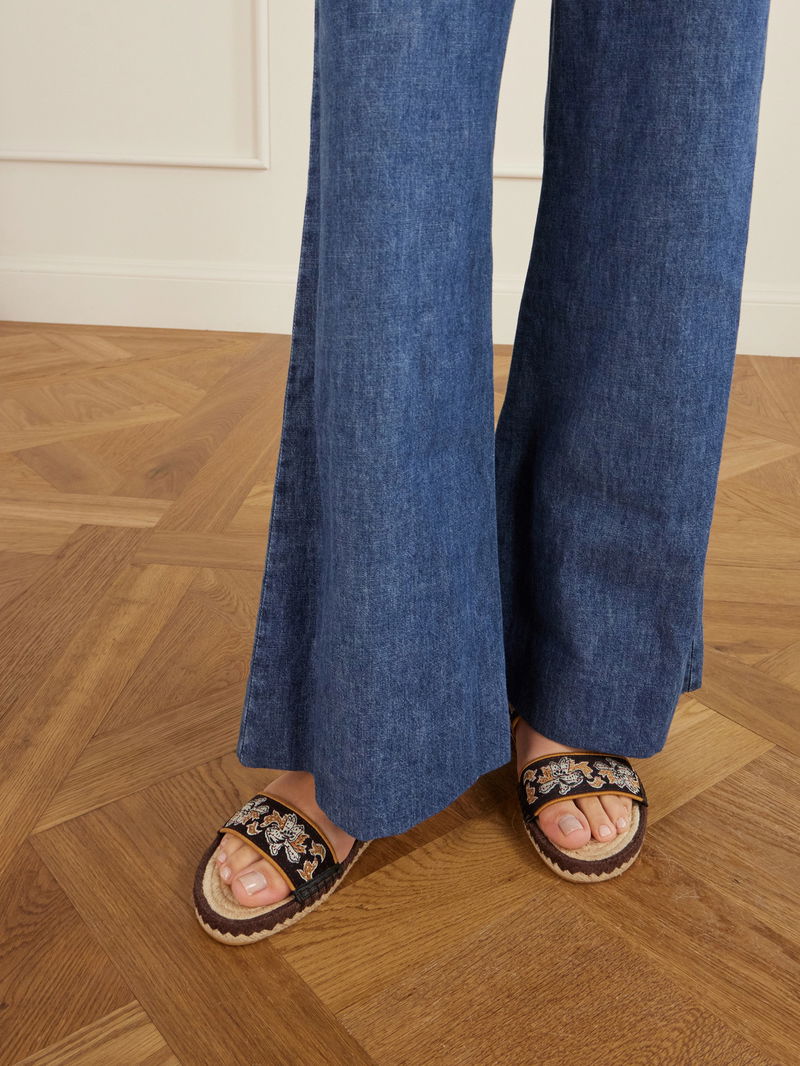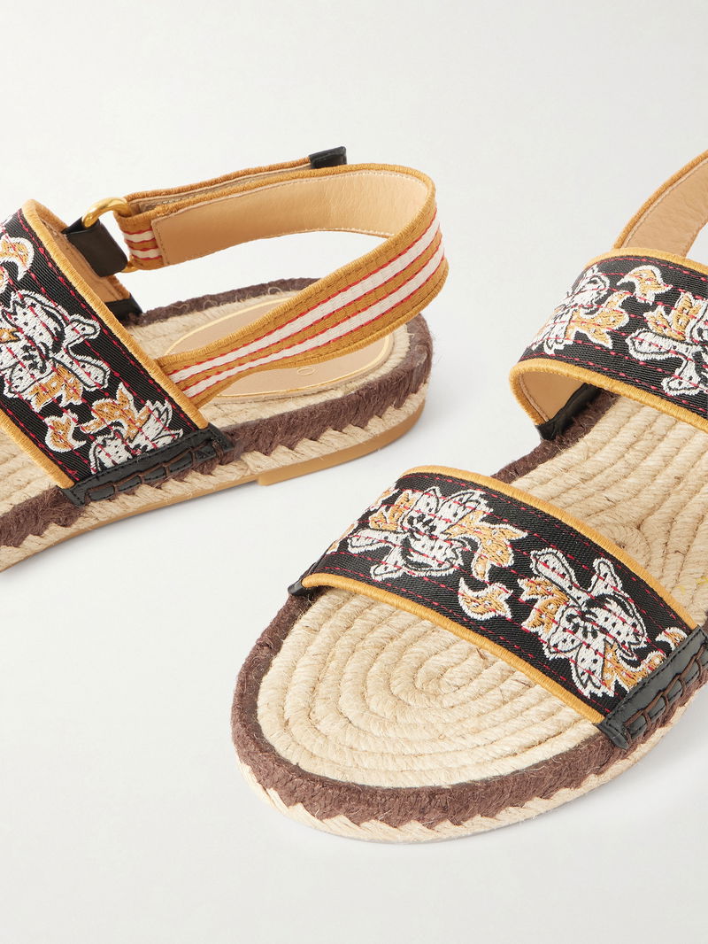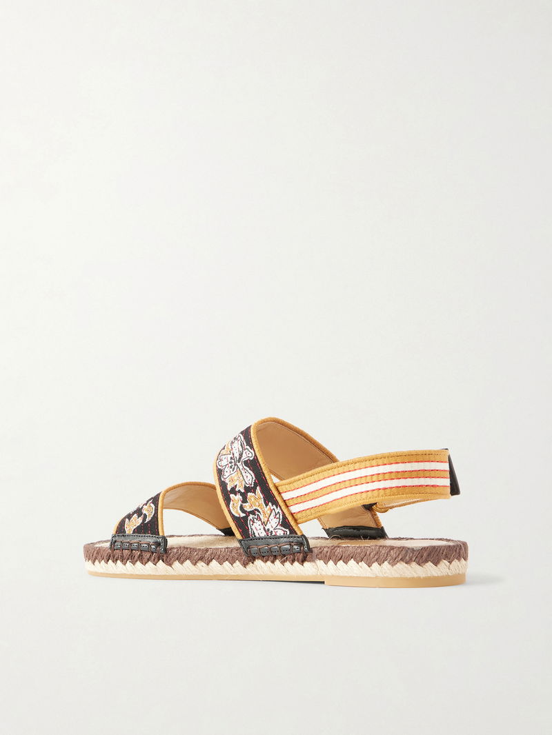 Leather-trimmed Embroidered Canvas Espadrille Sandals