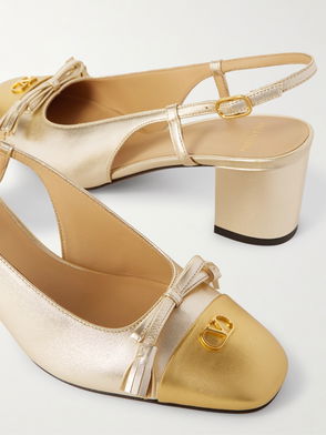 Valentino Garavani gives the classic slingback a spirited update, introducing a bold contrast toe and a tassel flourish that dances with every step. Sculptural yet wearable, they strike the balance between statement and sophistication, made for entrances that don't go unnoticed.