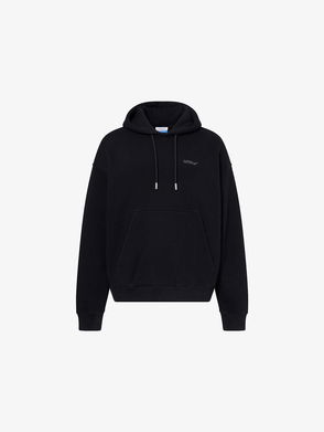 Valentino cotton-jersey hoody. Pulls on. Relaxed fit, drawstring hood, dropped shoulders, front pouch pocket, logo print at front, long sleeves, ribbed trims.