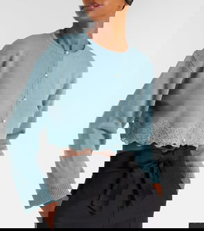 Dress, Metallic, Striped, Ribbed-knit, Embroidered logo, Front slit pockets, Button fastenings through front, Lightweight knit.