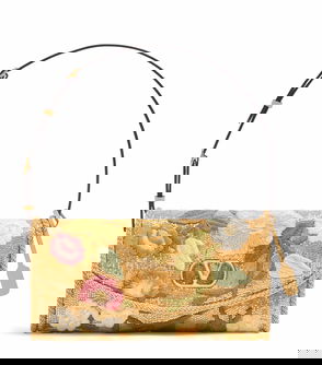 Modeled on vintage minaudieres , Valentino Garavani's bag is made from polished gold-tone metal embellished with rows of crystals and a signature 'VLogo'. It has a slim removable chain strap and a black suede trim that can be removed for a simpler look. The 'mini' proportions will fit just the essentials – think cards, mints and a lipstick for touch-ups.
