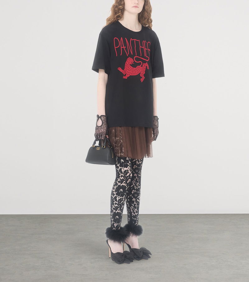 Garavani is better known by his mononym, Valentino. From the signature Rockstud leather shoes to richly embellished dresses, knitwear, tailoring and separates, Valentino Garavani pieces are characterised by a bold and playful use of colour and pattern, with a through line of glamour and luxury.