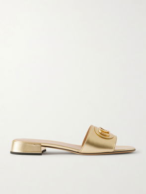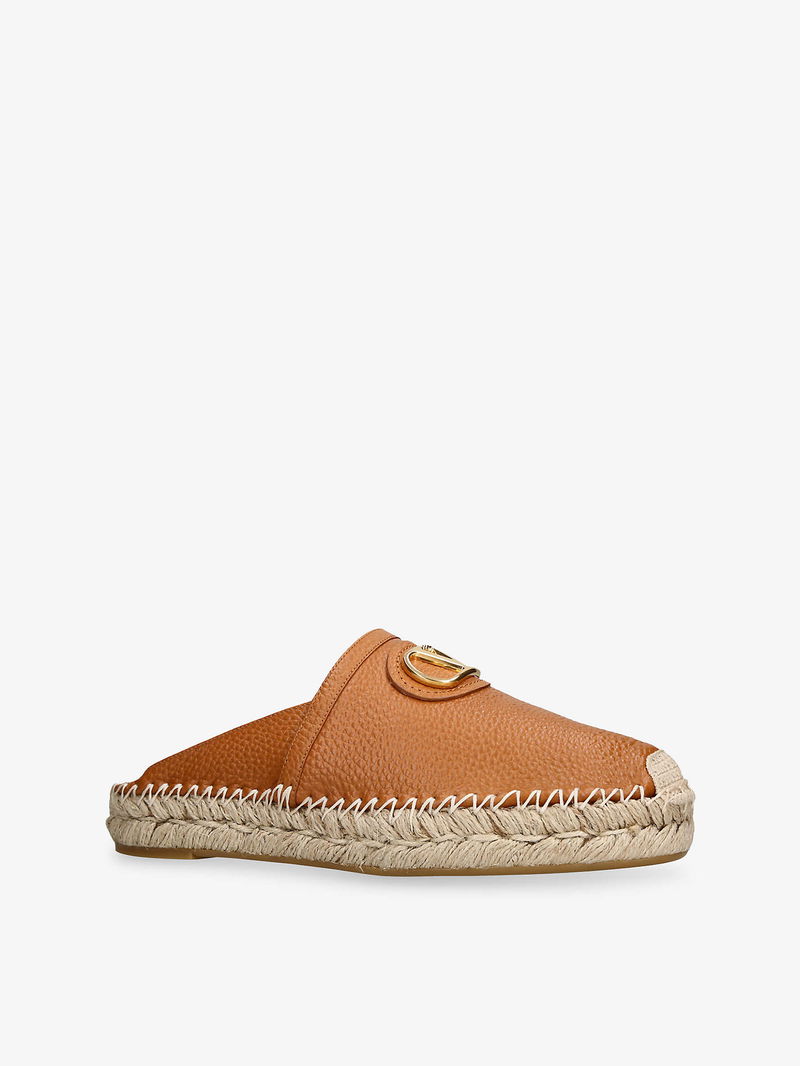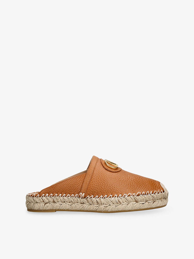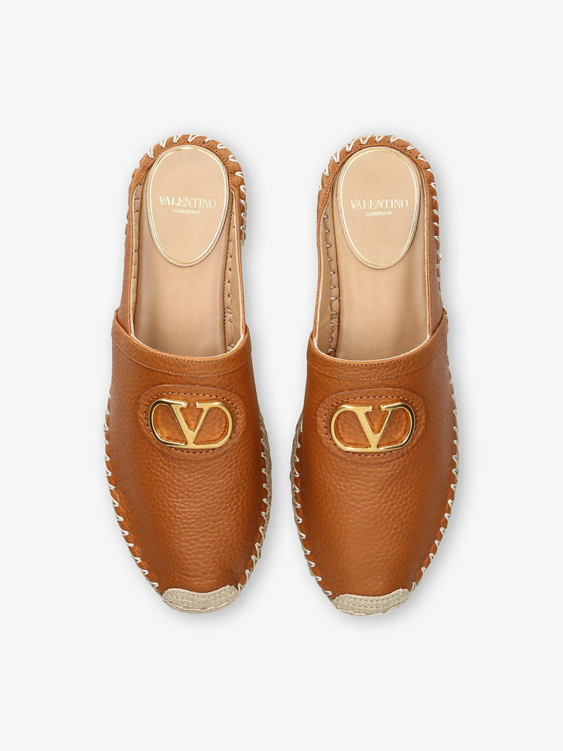 Valentino Garavani leather espadrilles. Round toe, gold-tone metal VLogo, jute midsole.
