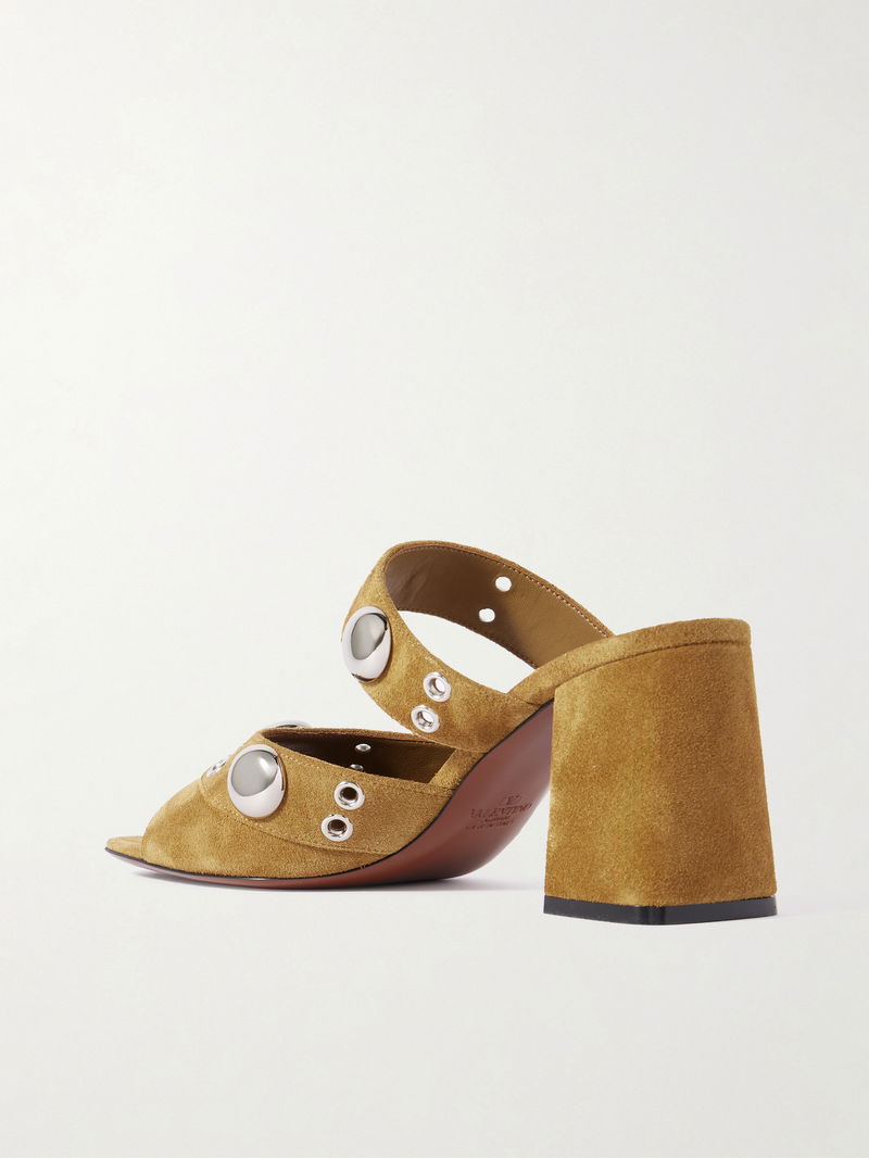 Garavani is better known by his mononym, Valentino. From the signature Rockstud leather shoes to richly embellished dresses, knitwear, tailoring and separates, Valentino Garavani pieces are characterised by a bold and playful use of colour and pattern, with a through line of glamour and luxury.