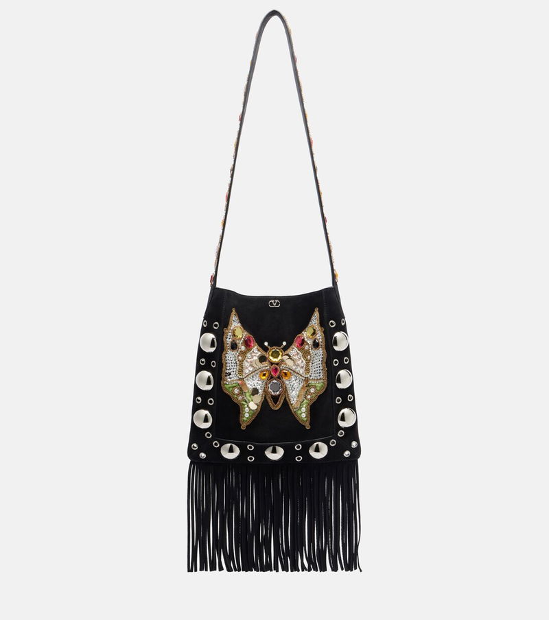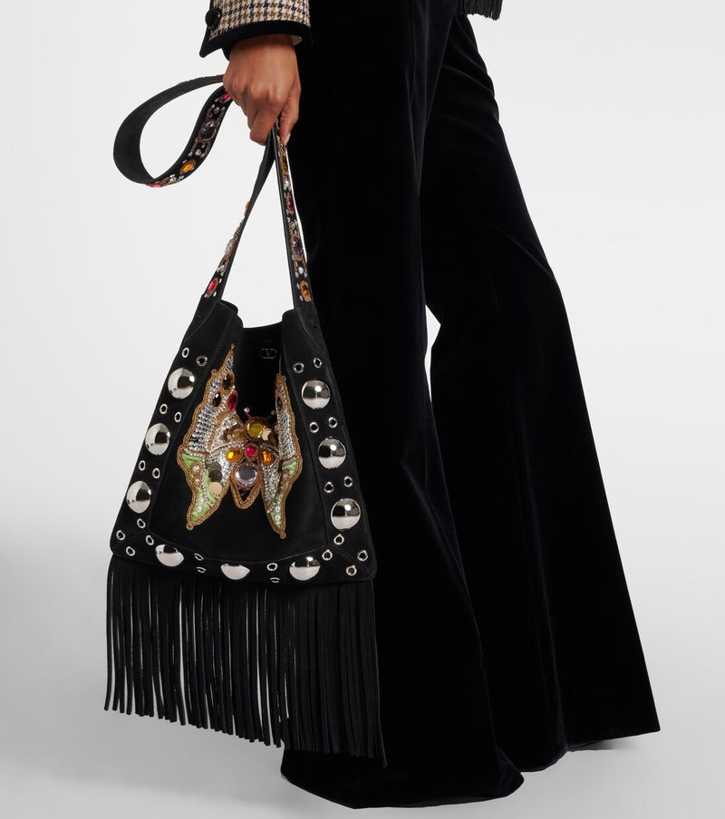 Nellcôte Medium Embellished Suede Shoulder Bag