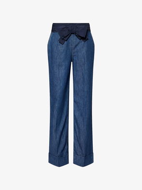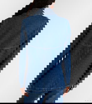 Valentino Garavani's faded denim jacket has bleached stripes and a gold-tone 'V' emblem. Cut for an oversized fit, it has dropped shoulders and pleated cuffs for a little extra volume.