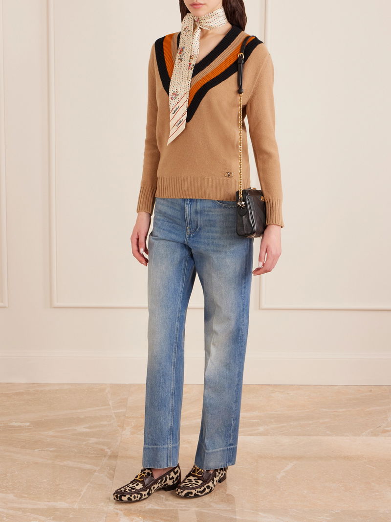 Garavani is better known by his mononym, Valentino. From the signature Rockstud leather shoes to richly embellished dresses, knitwear, tailoring and separates, Valentino Garavani pieces are characterised by a bold and playful use of colour and pattern, with a through line of glamour and luxury.
